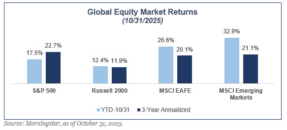 Global equities (and U.S. Large Cap equities, in particular) have generated significant gains over the last several years.