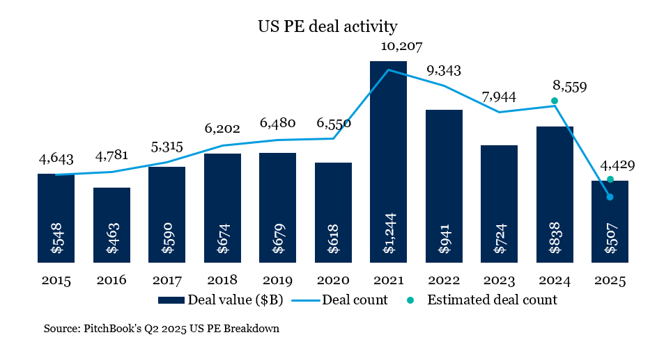 As attention continues to focus on private markets, the environment remains challenging across many fronts. Fundraising remains a challenge as timelines extend and, in many cases, GPs need to show progress on early deals before they can gain fundraising momentum. Deal activity started the year on a very optimistic note and then slowed significantly during the second quarter as buyers, sellers and lenders all grappled with uncertainty and unknowns around tariffs. As we have shared before, when volatility picks up in public markets, oftentimes deal activity grinds to a halt as parties try to determine how the new reality impacts their investments. Over the summer, as the band of outcomes around tariffs narrowed, processes resumed and deal activity regained some strength, coinciding with the added likelihood of a decreasing rate environment and improved strength in public markets.