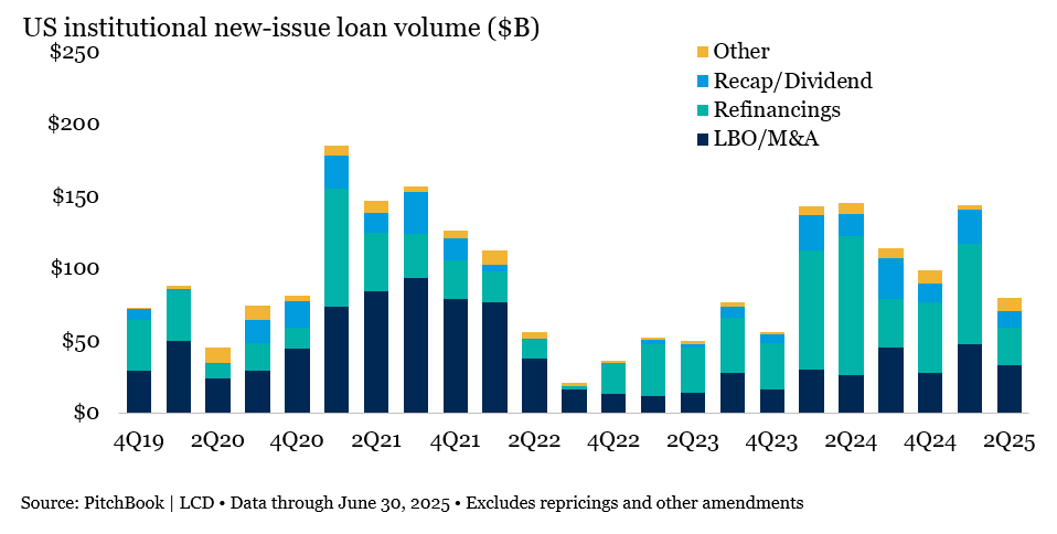 While capital raising has been strong, deployment has been more challenging. Loan volumes are down 23% year-over-year through June, driven by policy uncertainty, valuation mismatches and higher financing costs. That said, managers remain optimistic that activity will rebound as market conditions stabilize.